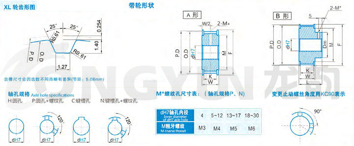 | 规格 | 形状 | 节径 | 外径 | 挡边外径 | 挡边内径 | 轮毂直径 | 内孔dH7 | |||||