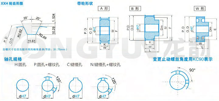 | 标准同步带宽度 | K | W | G | L22齿以下 | L22齿以上 |
